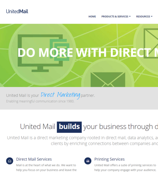 The redesign of united-mail.com was another large undertaking that Jason solely worked on. This included socializing the redesign, website architecture, design, development, imagery, SEO, testing, and launch.